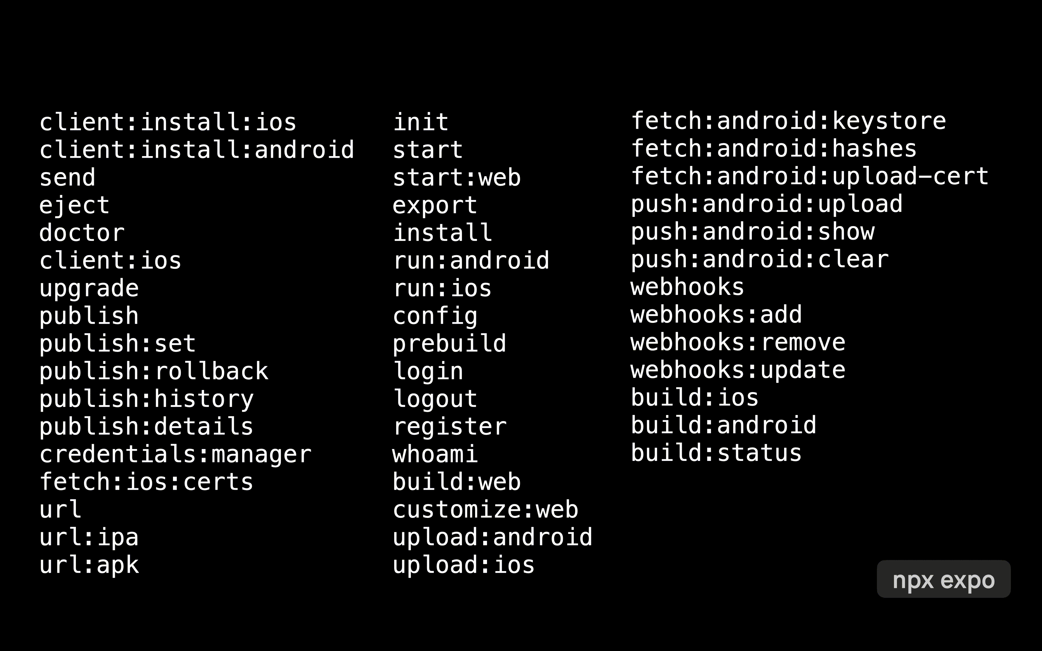 The global expo-cli package included the ability to build/submit native app binaries and publish OTA updates with our now deprecated cloud services — all of which have been replaced by the new Expo Application Services (EAS)!